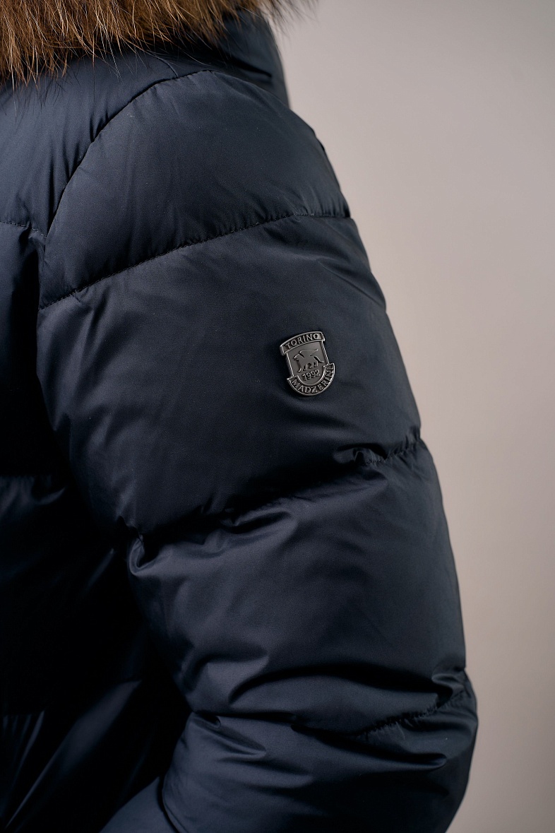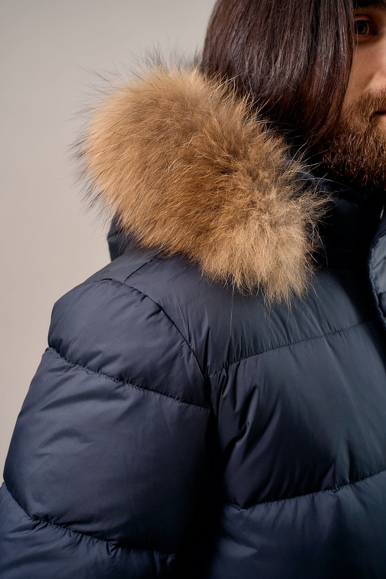 Куртка мужская на натуральном пуху с отд. из меха енота и трикотажа синий MADZERINI IGO/U63-14 (сине-чёрный)