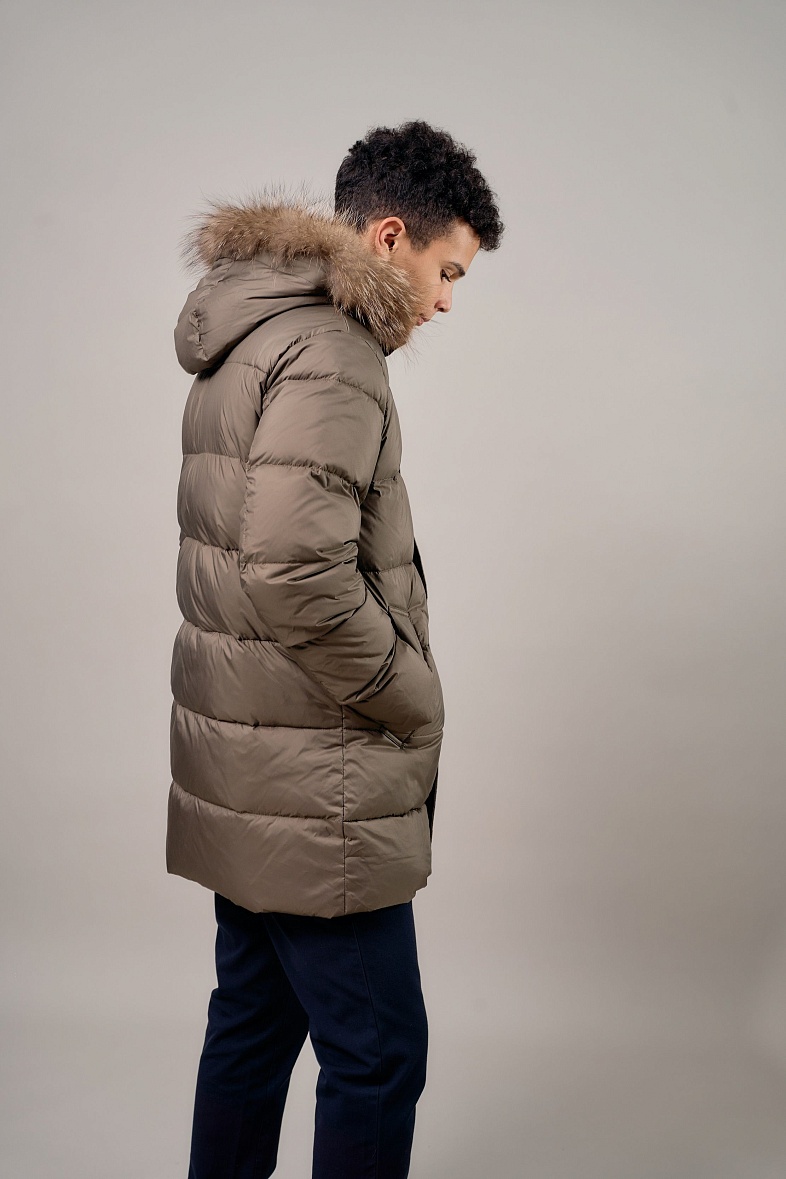 Куртка мужская на натуральном пуху с отд. из меха енота и трикотажа бежевый MADZERINI IGO/U63-205 (темно-бежевый)