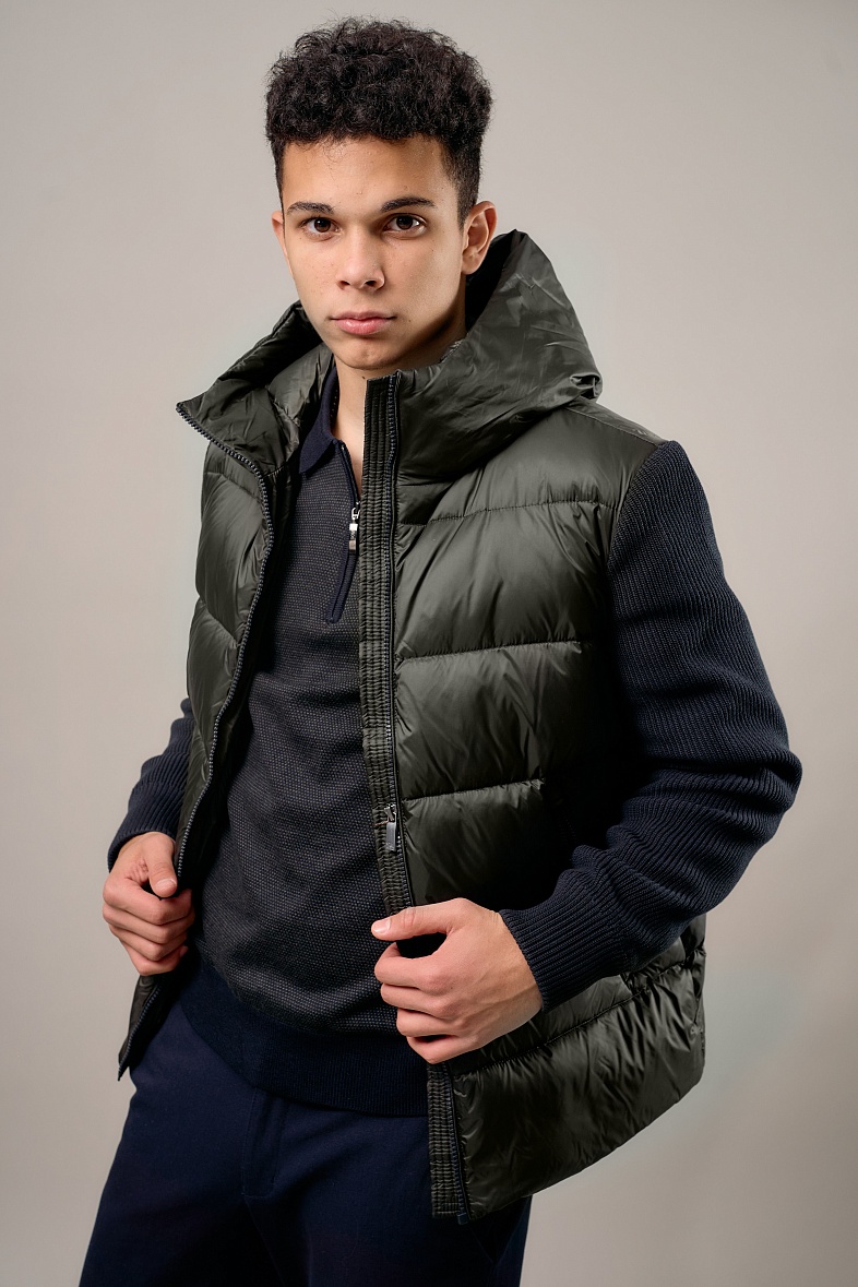 Куртка мужская нанатуральном пуху и утеплителе с отд. из трикотажа синий MADZERINI TIRSO/U26-133 (тёмно-зелёный)