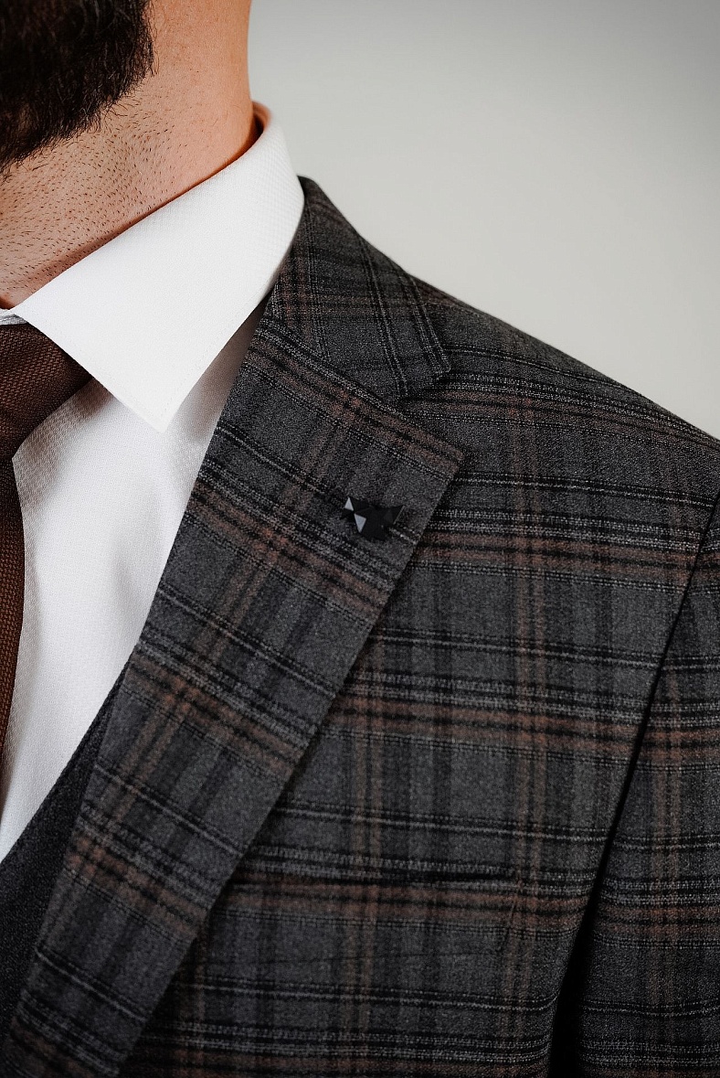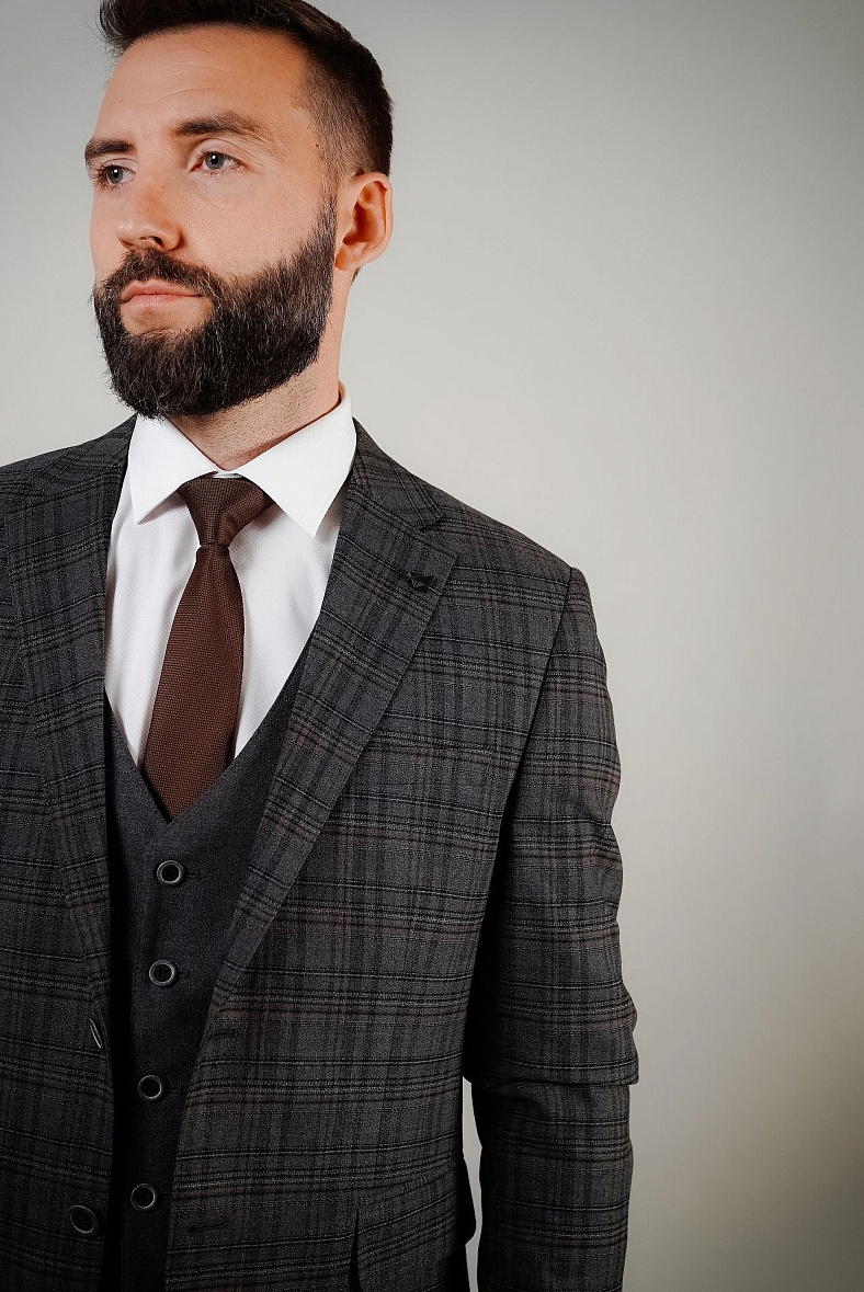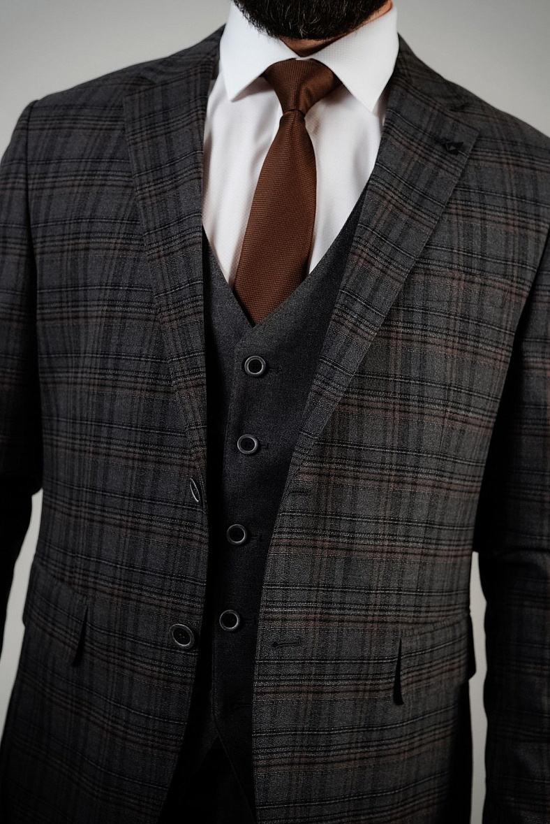 Костюм мужской   серый, черный, бежевый в клетку MCR 45276