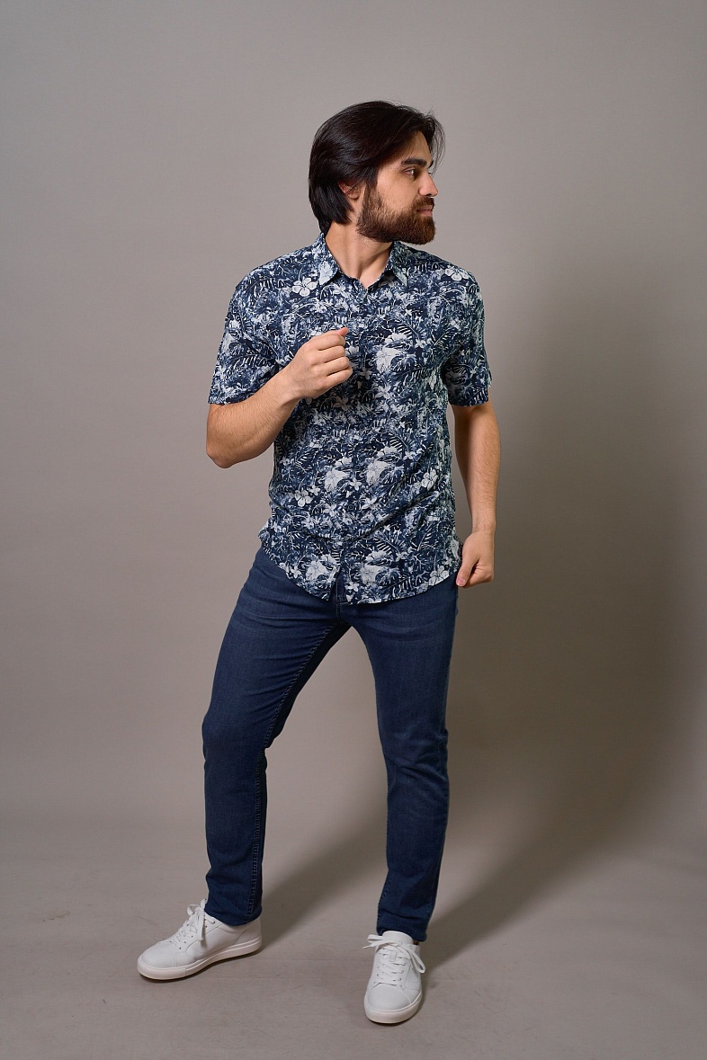 Рубашка мужская короткий рукав белый NINO PACOLI Разноцветная с рисунком