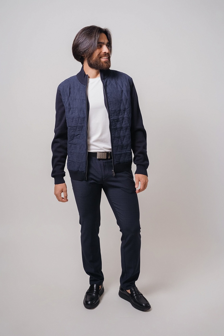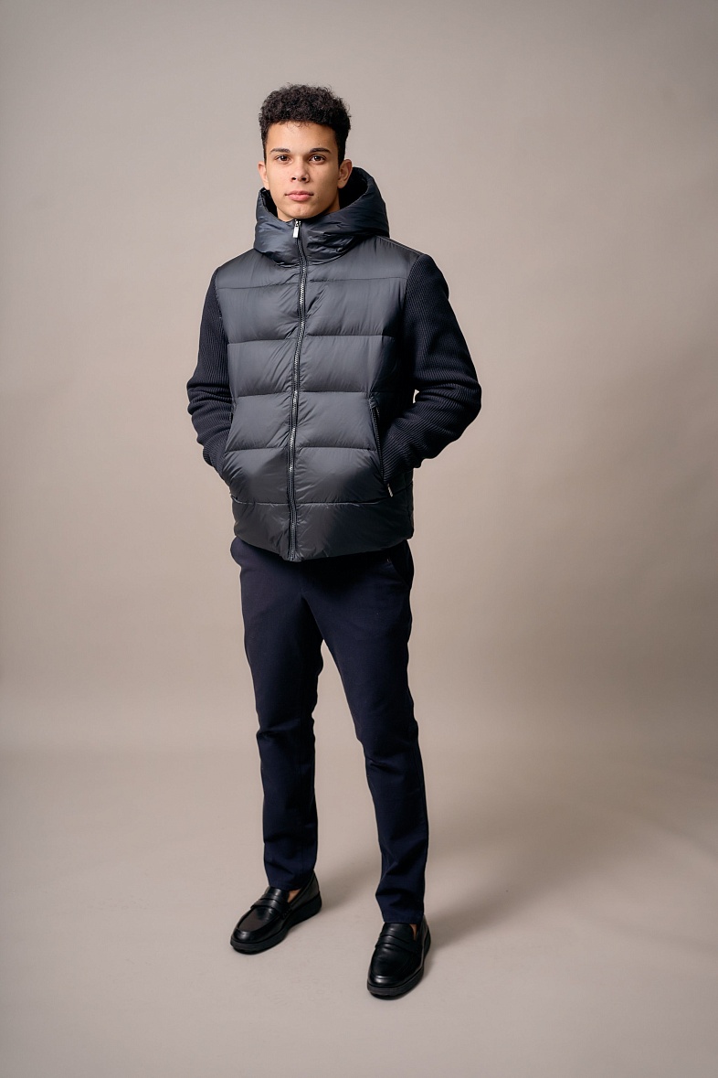 Куртка мужская нанатуральном пуху и утеплителе с отд. из трикотажа синий MADZERINI TIRSO/U26-14 (сине-чёрный)
