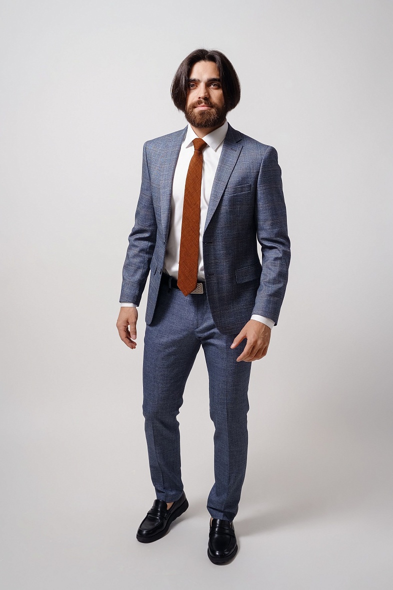 Костюм мужской   синий в клетку TRUVOR 2412V 3079 тк.СПО39331