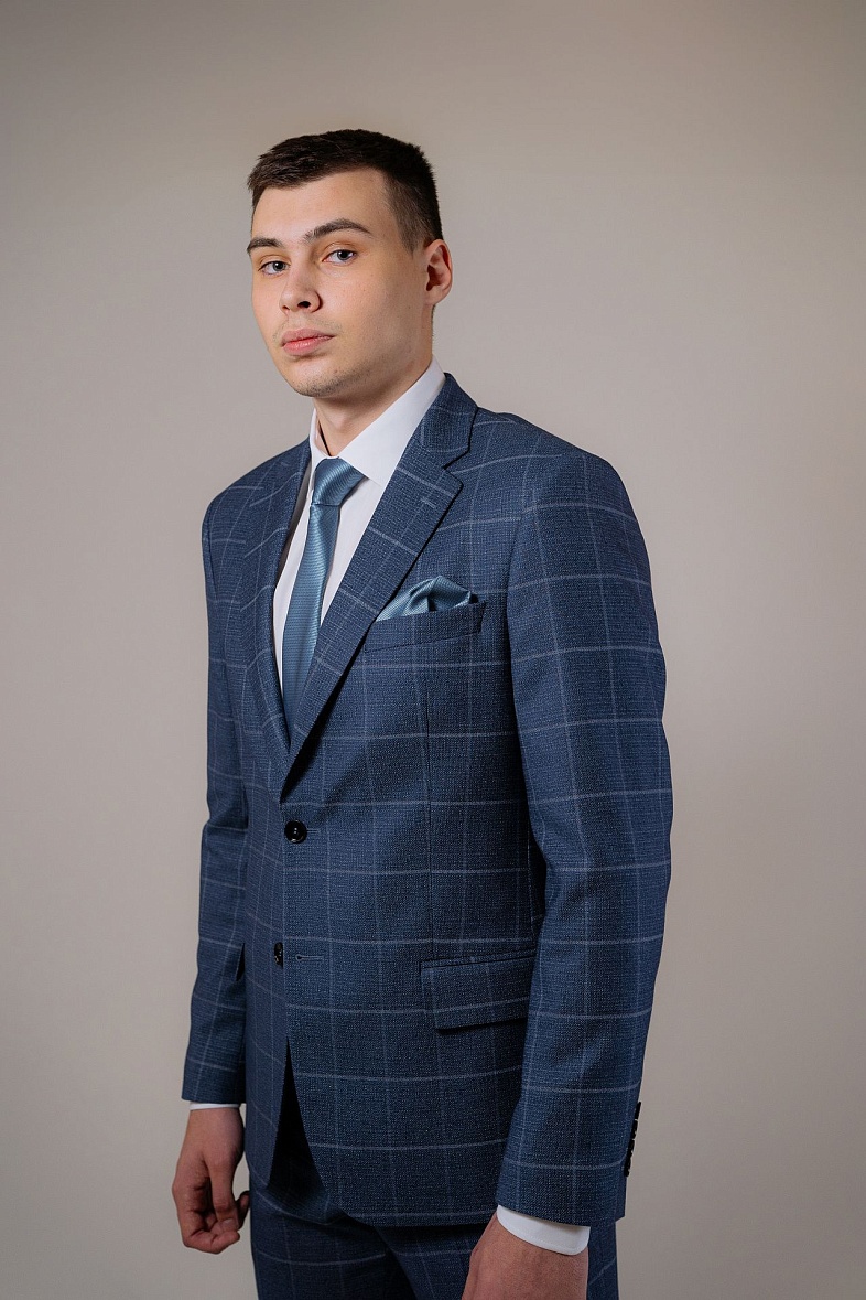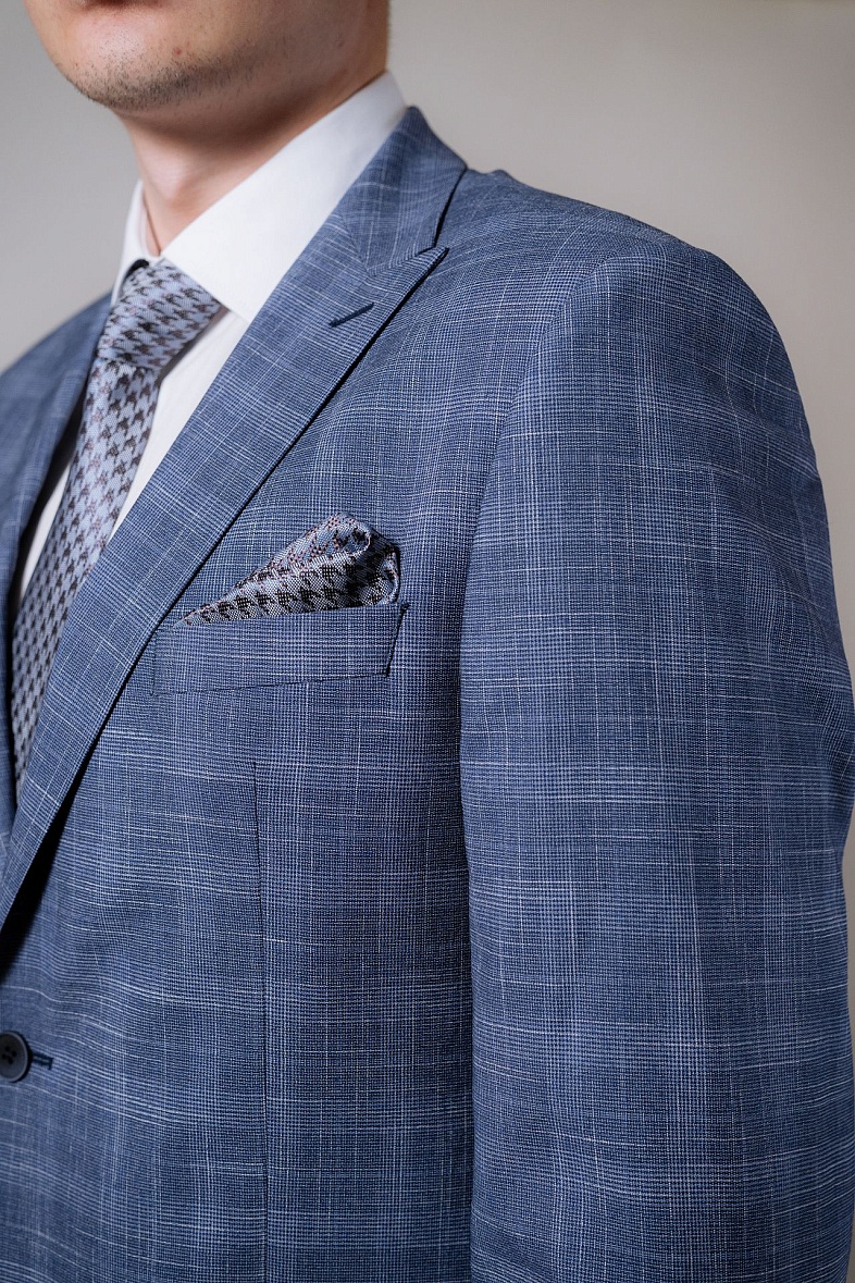 Пиджак мужской  голубой в клетку TRUVOR 2412V тк.СПО38745