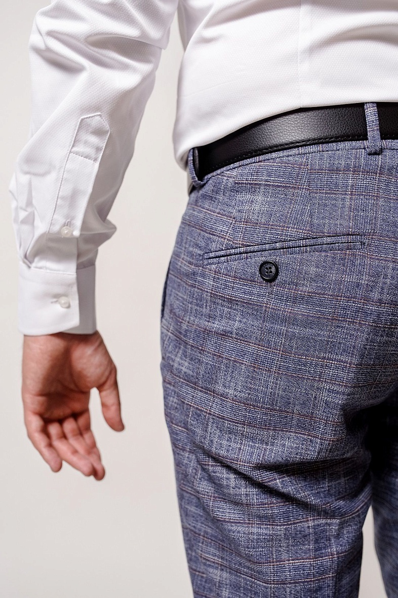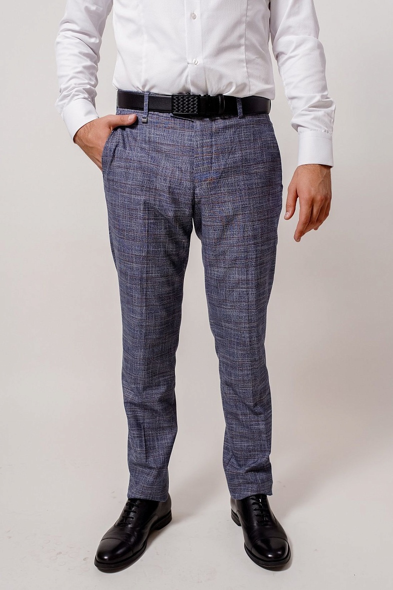 Брюки мужской   голубой в клетку TRUVOR 3045 тк.СПО38881