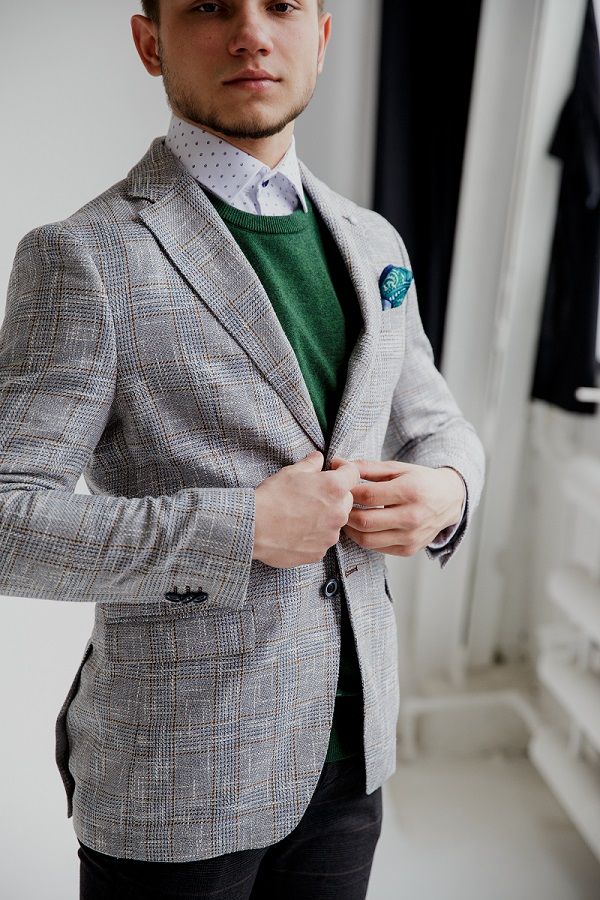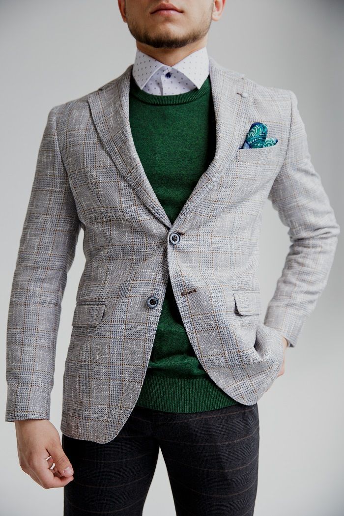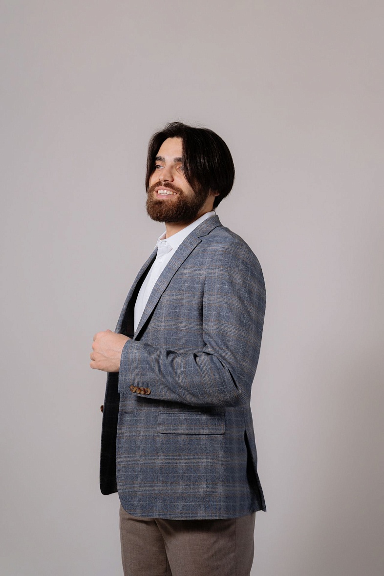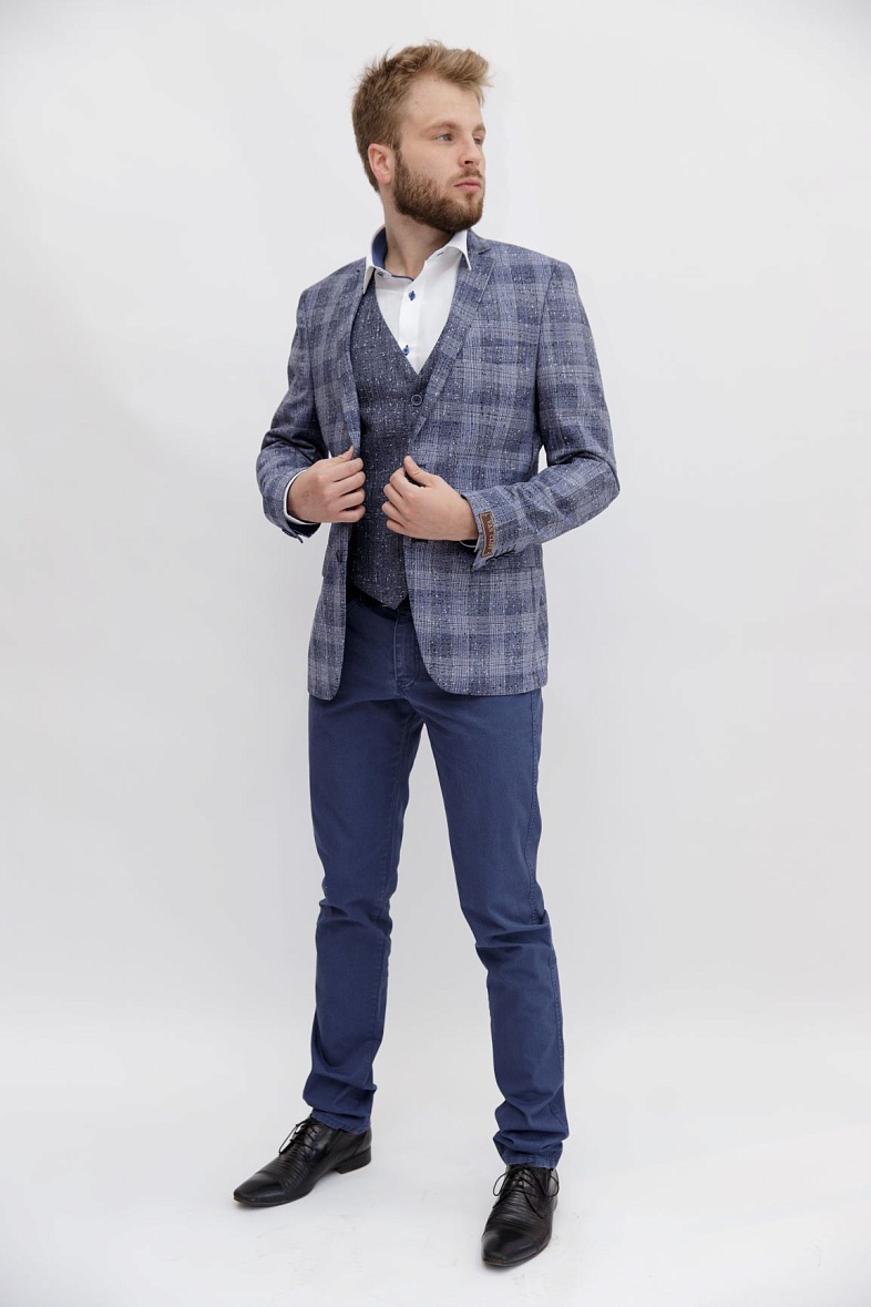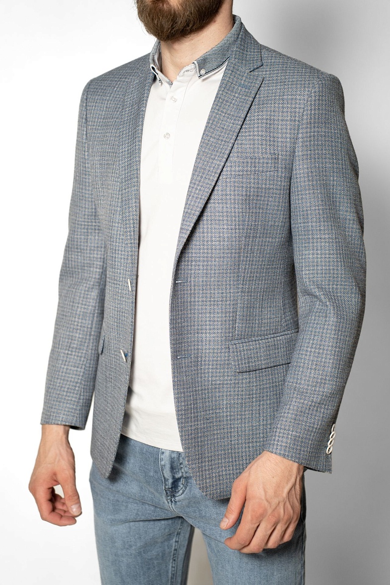 Пиджак мужской  голубой в клетку VALENTI 3459-VS-35S