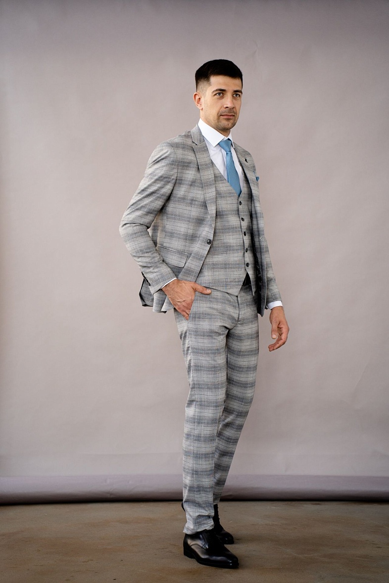 Костюм мужской   серый, синий в клетку TRUVOR 2412 3079 тк.СПО35982