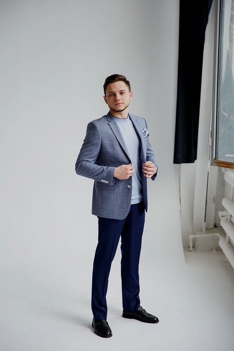 Пиджак мужской  голубой в клетку VALENTI 4224-VT-35S